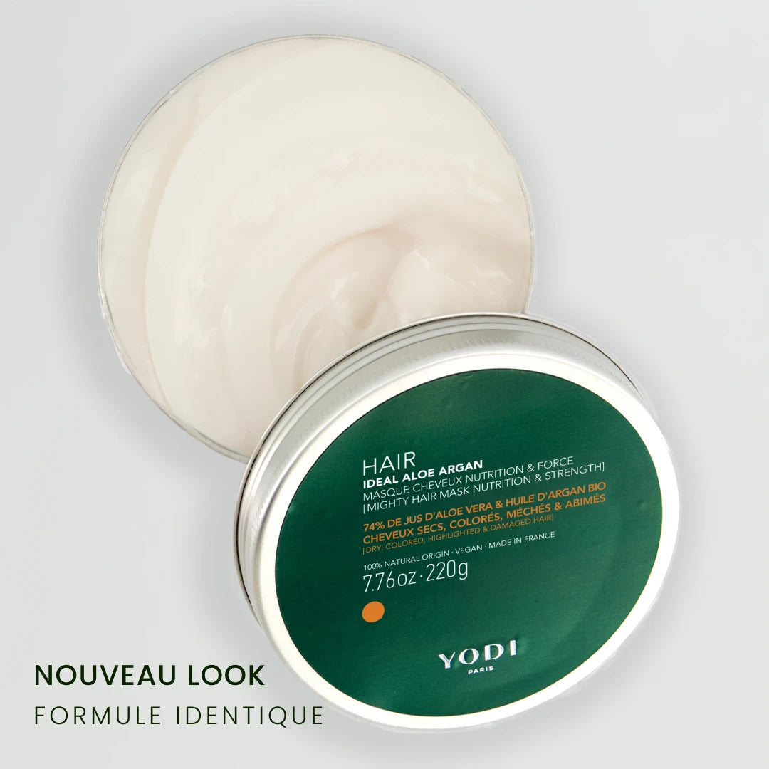 To nourish your scalp and lengthswithout weighing them down, we recommend Ideal Aloe Argan Mask ! (220 g). With 12 natural and vegan ingredients , its creamy formula deeply nourishes and cares for your hair, while giving it 100% natural shine and feel.