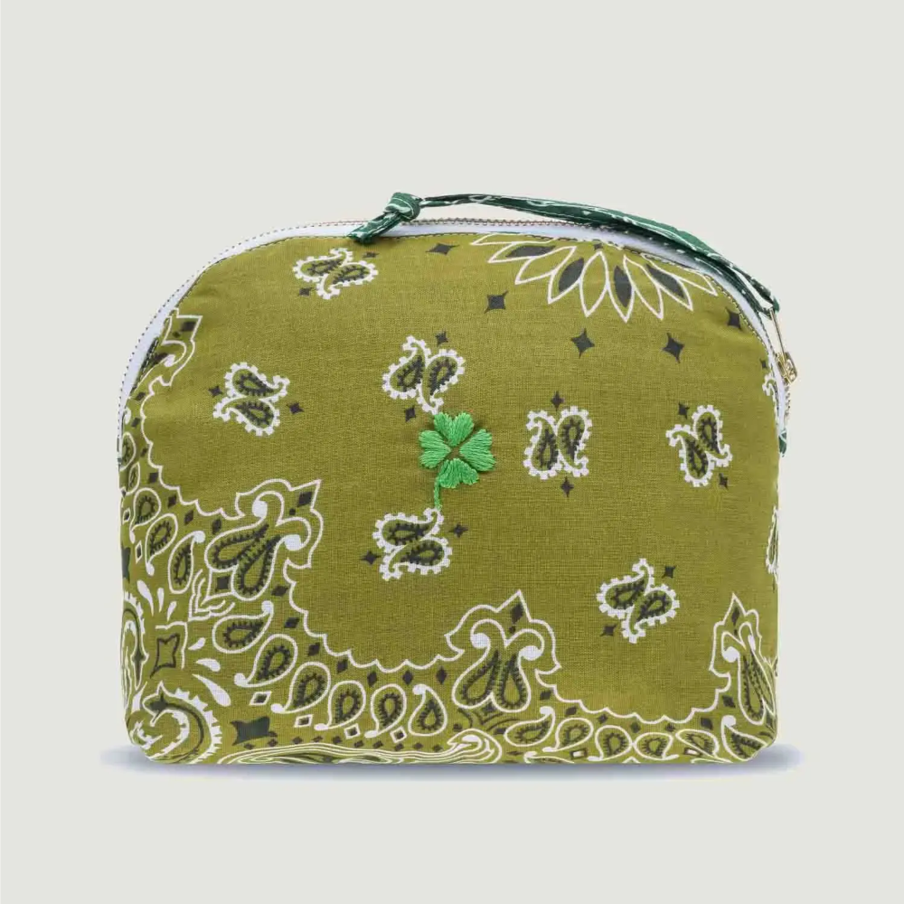 Fabriquée en Europe et brodée à la main à Paris, cette trousse en coton 100% incarne le soin artisanal dans ses moindres détails. Chaque pièce est unique, les bains de teinture étant réalisés à la main, de légères variations de couleur font partie de son caractère.