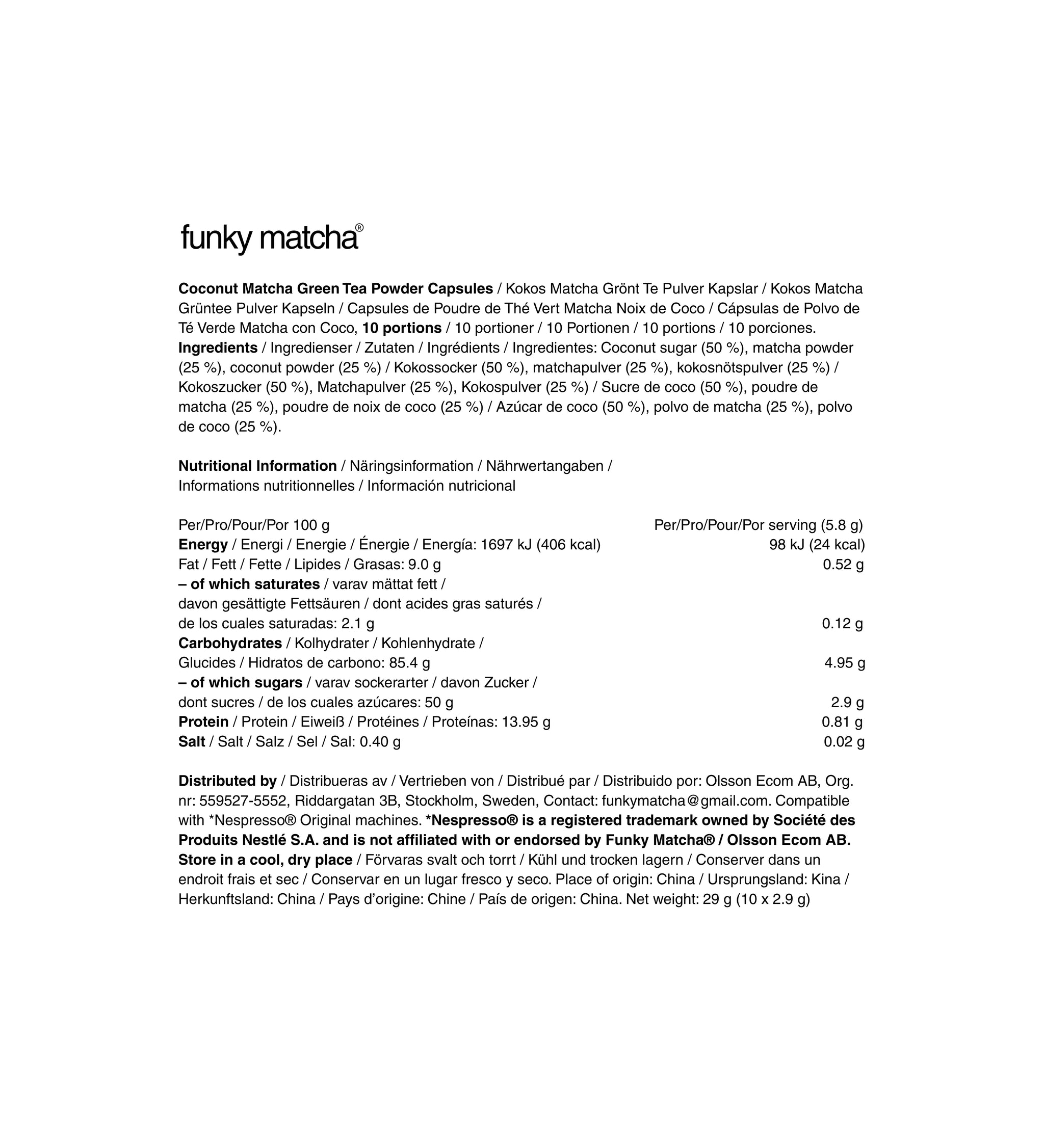 Nespresso® est une marque déposée appartenant à Nestlé S.A., sans lien avec Funky Matcha® et Yodi.