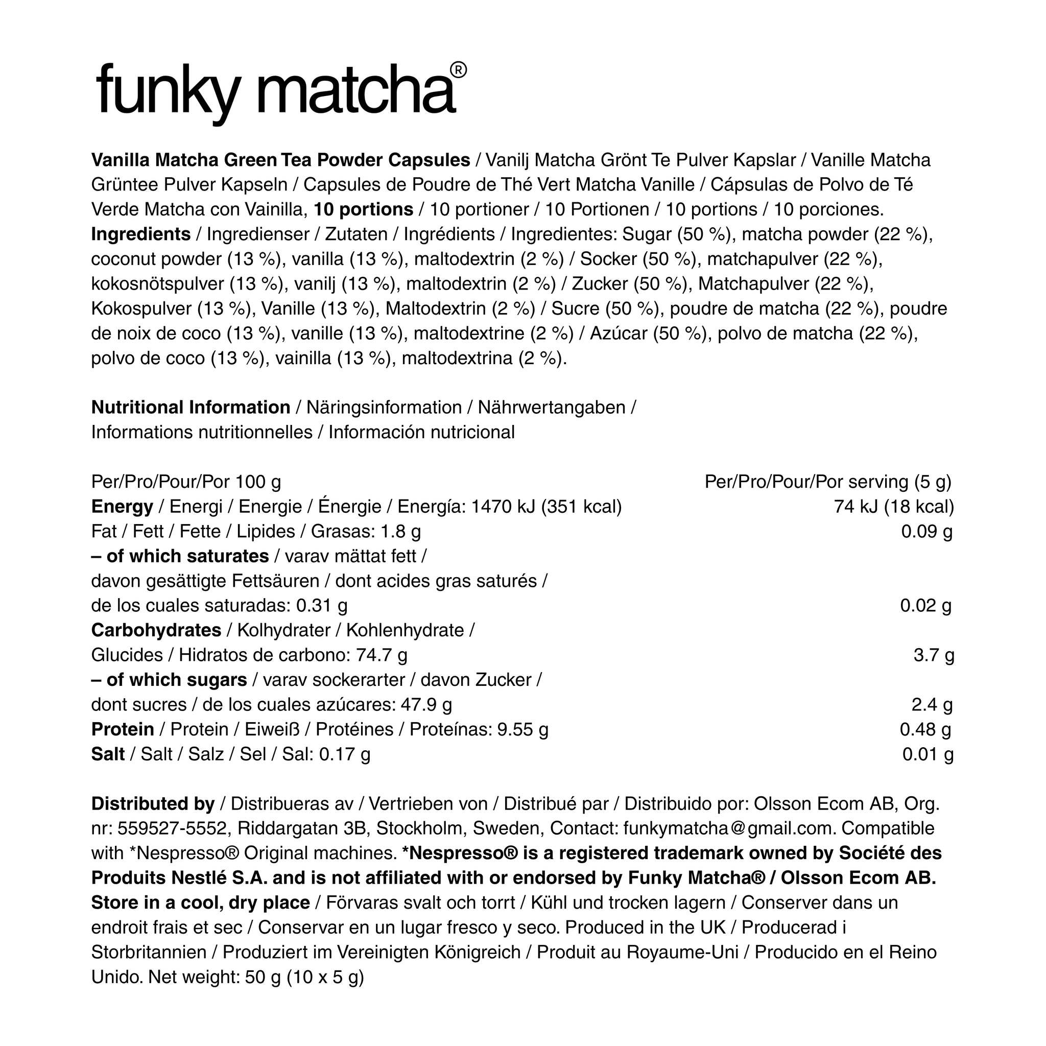Nespresso® est une marque déposée appartenant à Nestlé S.A., sans lien avec Funky Matcha® et Yodi.