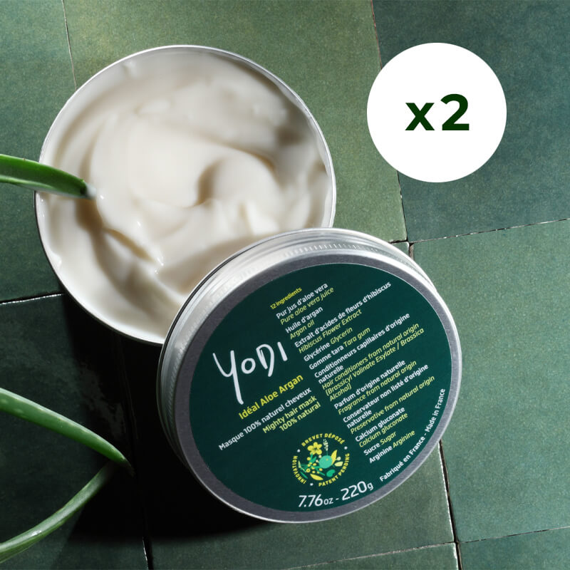 Voted N°1 for dry hair by UFC Que Choisir, this duo of water-, sulfate- and preservative-free masks contains 70% pure ORGANIC aloe vera juice. To be used as a conditioner or leave-in treatment, it moisturizes, strengthens and repairs hair fibers, and makes detangling easier. An ultra-comprehensive treatment for nourished, protected and radiant hair, right down to the ends!
