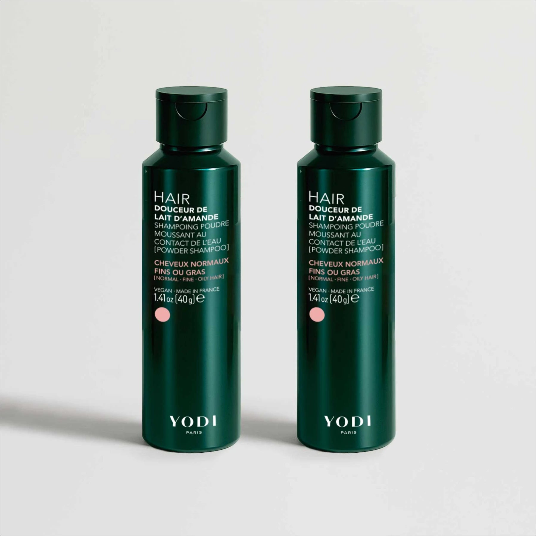 Kit of 2 Douceur de Lait d'Amande foaming powder shampoos at an affordable price. Perfect for fine, oily hair or hair lacking volume. Preservative-, silicone- and sulfate-free, they contain no water and are concentrated in natural active ingredients. Enriched with prebiotics and cold-processed, they care for your scalp and hair, leaving it soft and shiny .