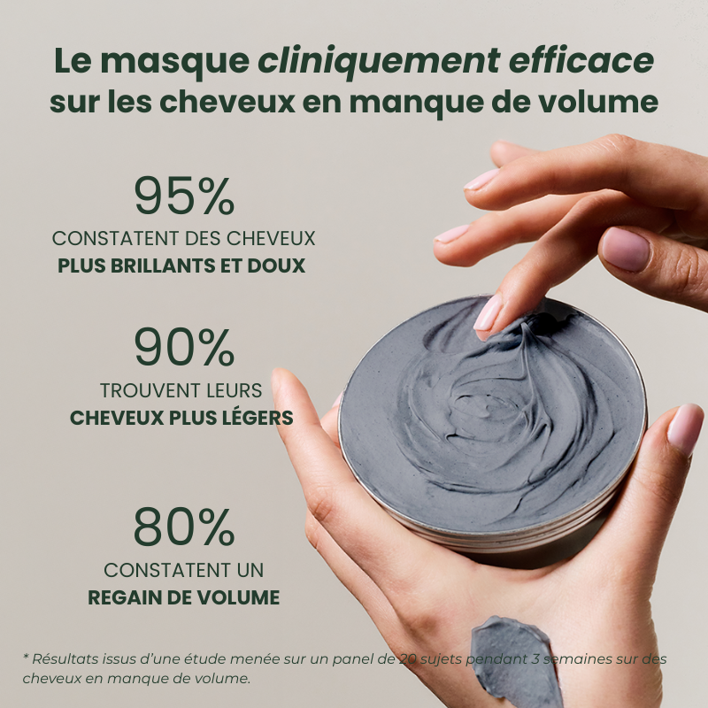* Résultats issus d’une étude menée sur un panel de 20 sujets pendant 3 semaines sur des cheveux en manque de volume.